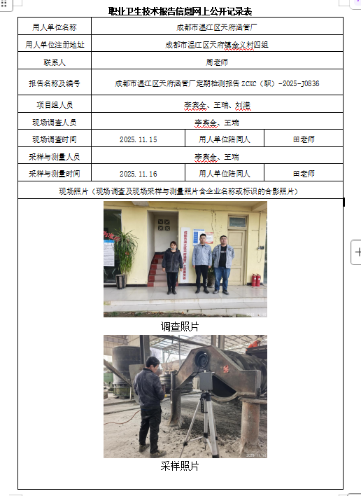 下一篇:成都市泽仁实业有限责任公司职业病危害因素定期检测