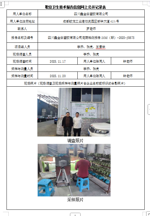 上一篇:四川金合利通用部件有限公司职业病危害因素定期检测