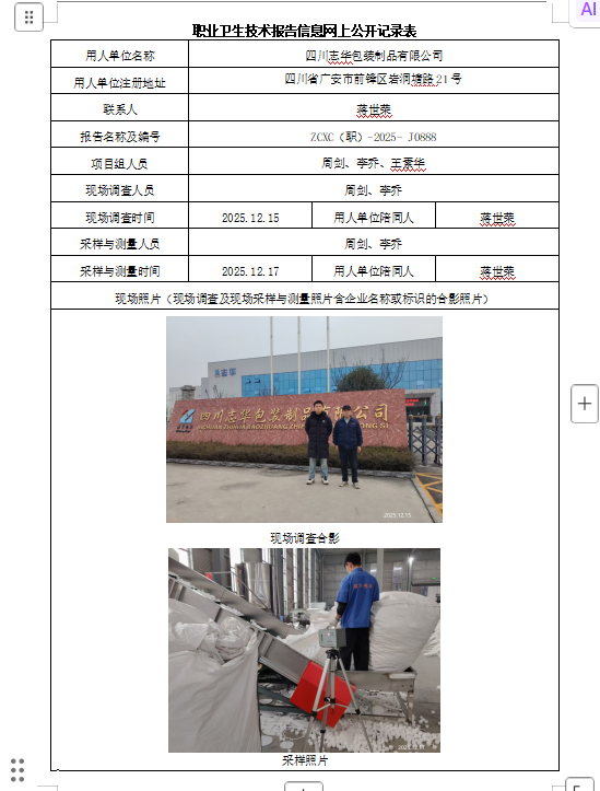 上一篇:宜宾华邦电气有限公司职业病危害因素定期检测