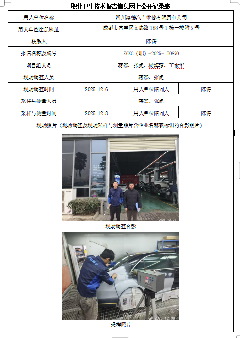 上一篇:四川军山科技有限公司职业病危害因素定期检测