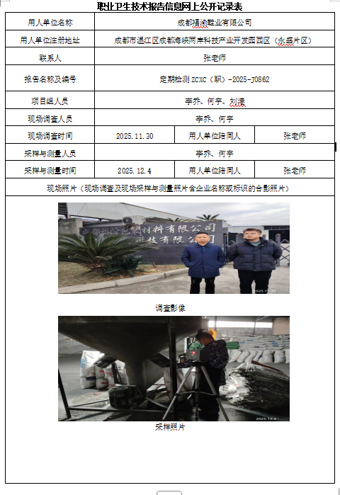 下一篇:绵阳市强山新材料科技有限公司职业病危害因素定期检测