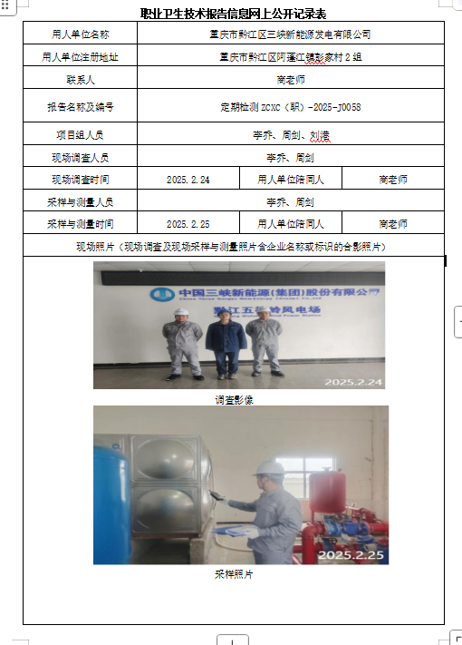 上一篇:重庆市武隆区大梁子风力发电有限公司职业病危害因素定期检测