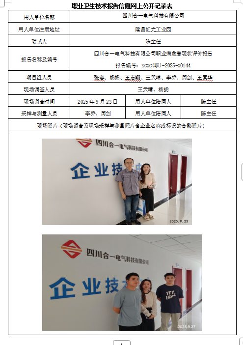 上一篇:四川和盛新材料科技有限公司一万吨药品、食品用软包装复合膜、袋技改升级项目职业病危害控制效果评价