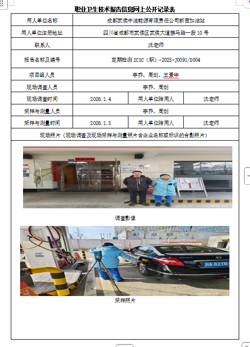 下一篇:成都武侯中油能源有限责任公司簇桥加油站职业病危害因素定期检测