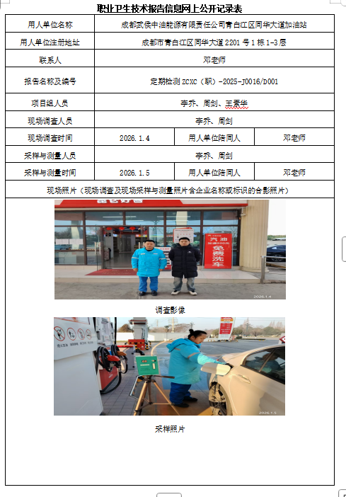 下一篇:成都武侯中油能源有限责任公司新都木兰分水加油站职业病危害因素定期检测