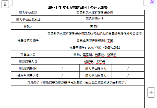 下一篇:西昌航天水泥有限责任公司西昌航天水泥水泥窑尾烟气超低排放改造项目职业病危害预评价