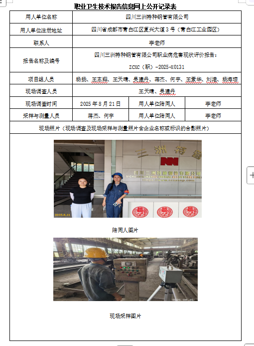 下一篇:宜宾瑞兴实业有限公司高温高尘SCR超低排放改造项目职业病危害控制效果评价报