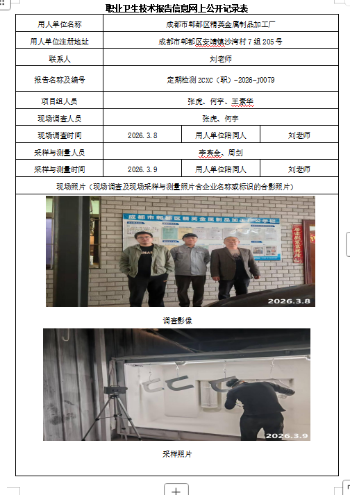 下一篇:成都港泰实业有限公司职业病危害因素定期检测
