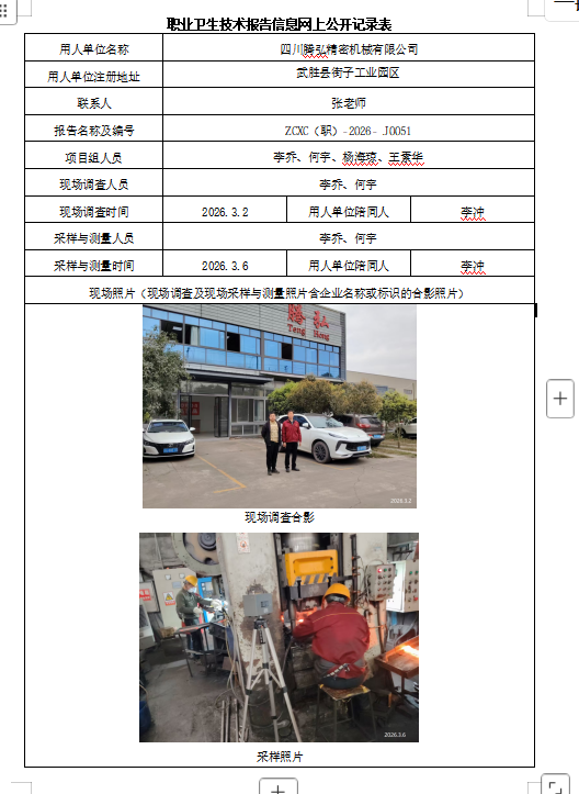 下一篇:眉山金广地作物保护科技有限公司职业病危害因素定期检测