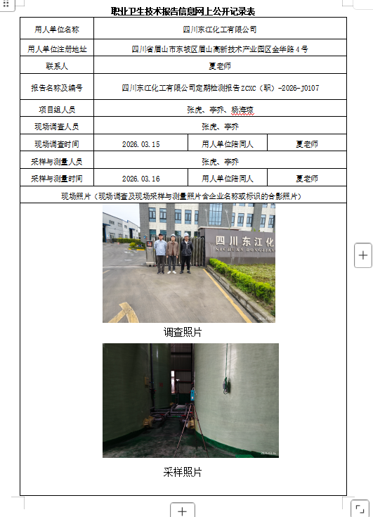 下一篇:四川合佳科技有限公司职业病危害因素定期检测
