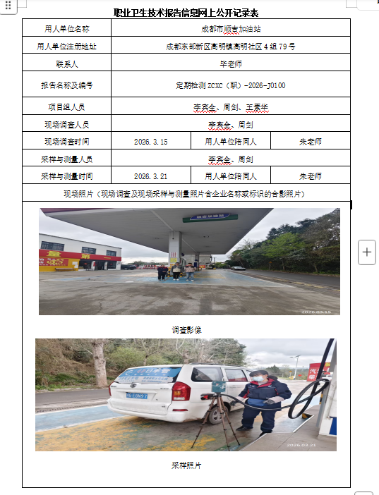 下一篇:成都市惠佳加油站职业病危害因素定期检测