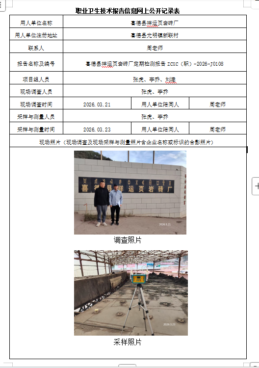 下一篇:四川零公里工程构件有限责任公司职业病危害因素定期检测