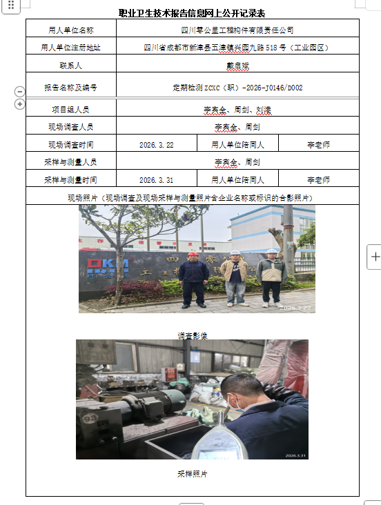 下一篇:四川鑫恒仁汽车零部件有限公司职业病危害因素定期检测