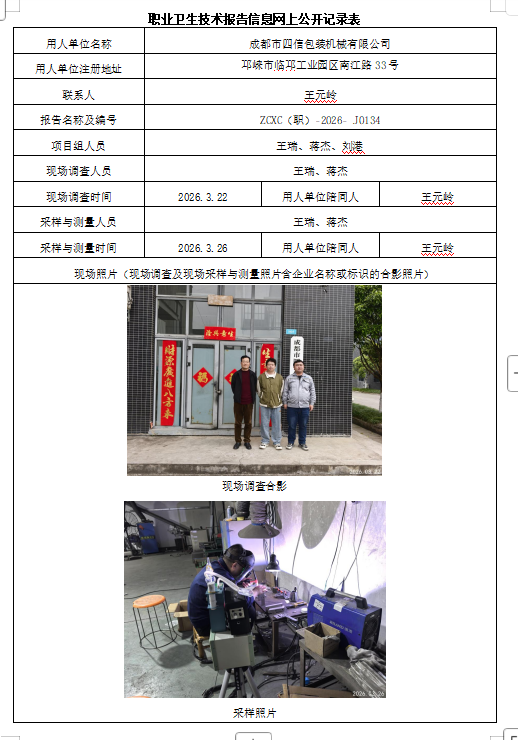 下一篇:成都市本盛轨道客车装备有限公司职业病危害因素定期检测