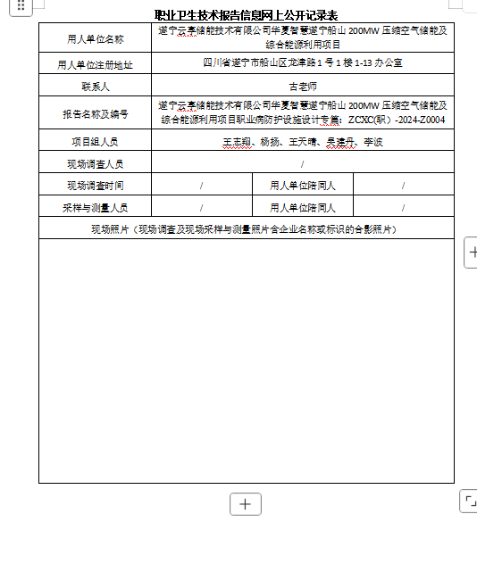 下一篇:遂宁云享储能技术有限公司华夏智慧遂宁船山200MW压缩空气储能及综合能源利用项目职业病危害预评价