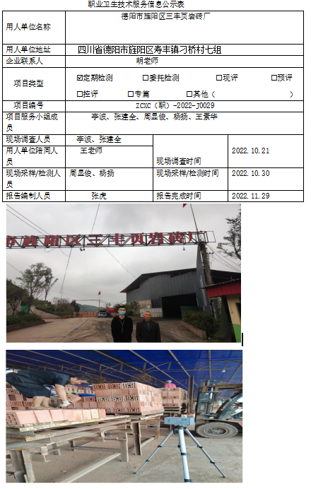 下一篇:德阳市旌阳区山河页岩厂职业病危害因素定期检测