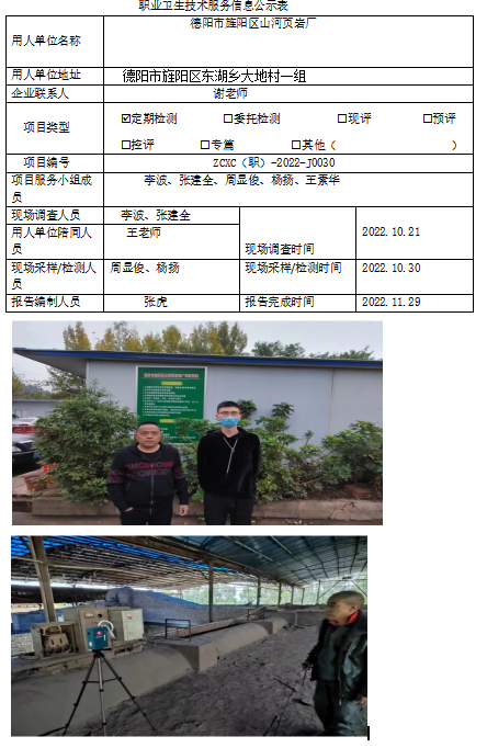 上一篇:德阳市旌阳区三丰页岩砖厂职业病危害因素定期检测