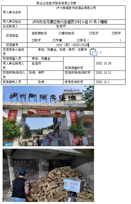 下一篇:泸州鼎旺酒业有限公司职业病危害因素定期检测