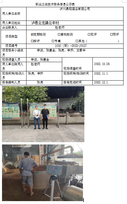下一篇:泸州国醇酒业有限公司职业病危害因素定期检测