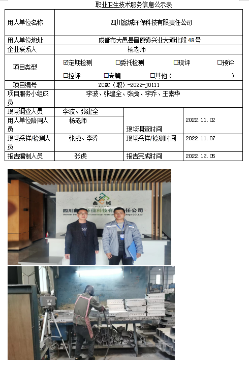 下一篇:成都力威门业有限公司职业病危害因素定期检测