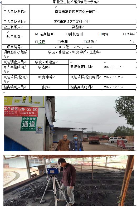上一篇:泸州市合江县白米乡华新建材厂职业病危害因素定期检测