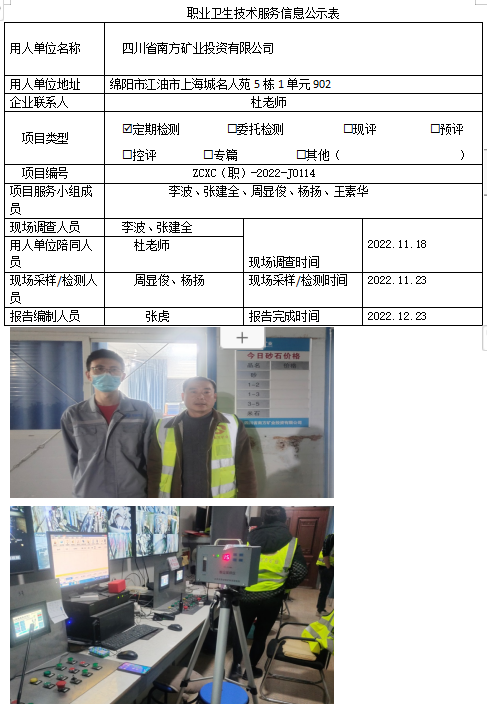 下一篇:成都市和谐鑫力峰建材有限公司职业病危害定期检测