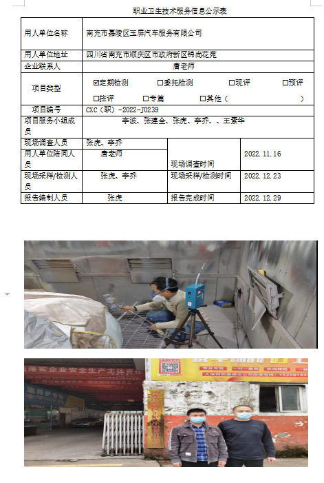 上一篇:南充市嘉陵区龙天车艺维修中心职业病危害因素定期检测