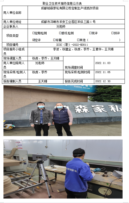 下一篇:江油市重鑫特种金属材料有限公司职业病危害现状评价