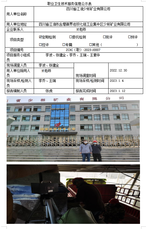 下一篇:江油少彬矿业有限公司职业病危害因素定期检测