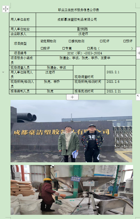 上一篇:江油市兴通经贸有限公司职业病危害因素定期检测