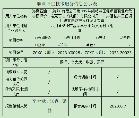 上一篇:洛克石油(成都)有限公司角108井组钻井工程项目职业病危害预评价、防护设施设计专篇