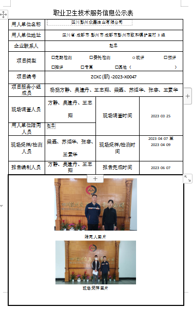 下一篇:成都奥尤盖茨科技发展有限公司职业病危害因素定期检测