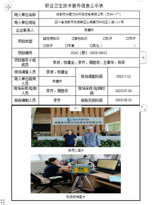 下一篇:成都市兴蓉再生能源有限公司(下属渗滤液厂一期、二期、三期)职业病危害因素定期检测