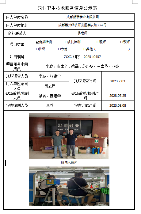 下一篇:成都顺邦工贸有限公司职业病危害因素定期检测