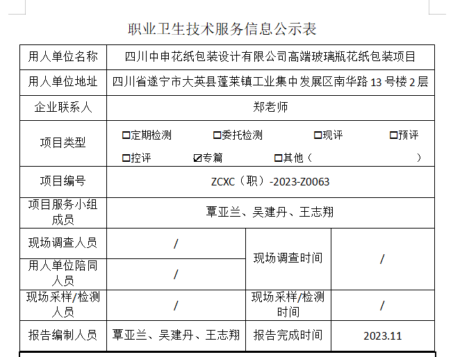 上一篇:四川中申花纸包装设计有限公司高端玻璃瓶花纸包装项目职业病危害预评价