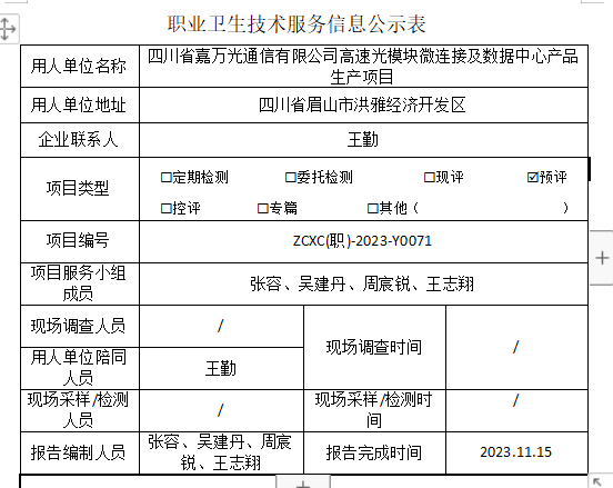 下一篇:四川省嘉万光通信有限公司高速光模块微连接及数据中心产品生产项目防护设施设计专篇