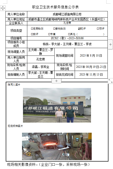 上一篇:绵阳市攀丰智能制造有限公司职业病危害现状评价