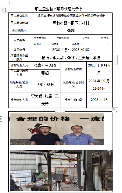 上一篇:成都岷江锻造有限公司职业病危害现状评价
