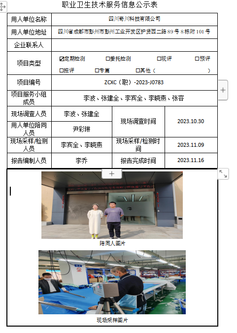 下一篇:四川佳玛机械制造有限公司职业病危害因素定期检测