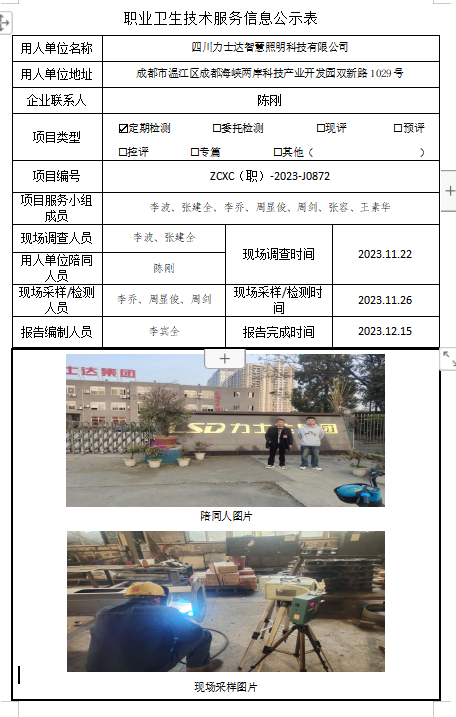上一篇:四川正基有机硅有限公司职业病危害因素定期检测