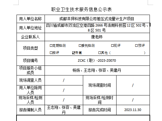 上一篇:成都洋湃科技有限公司差压式流量计生产项目职业病危害控制效果评价